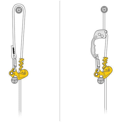 - the device locks automatically on the rope once the friction chain extends