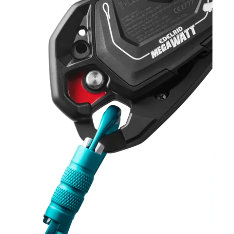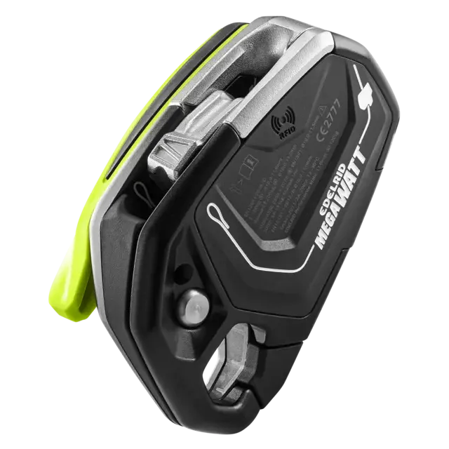 MEGAWATT is a universal descender device for industrial climbers and rescue operations with a payload of up to 200 kg. The intelligent transmission mechanics of the descent lever facilitate a large operating range and exact adjustment of the speed at minimum force.