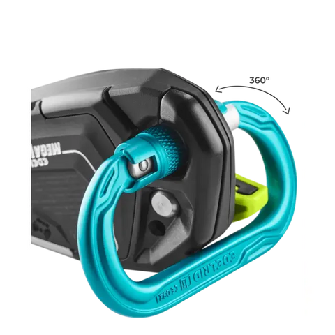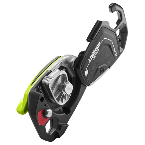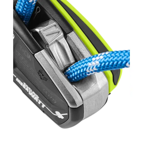 The risk of uncontrolled travel along the rope is reduced by the anti-panic function. It can also be triggered deliberately to reverse the sense of operation of the lever. This allows optimum handling in any application and position. All this makes the MEGAWATT the most versatile descender device in the market at a weight of only 495 g.