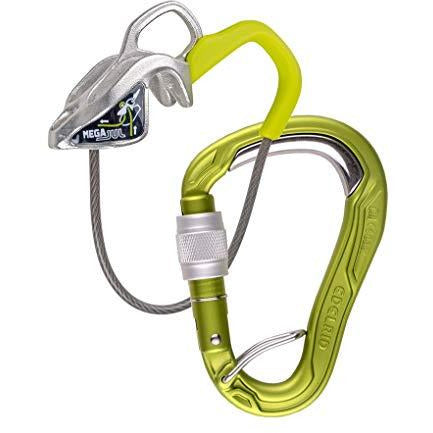 Belay set containing Mega Jul belay device and HMS Bulletproof Screw FG carabiner.
