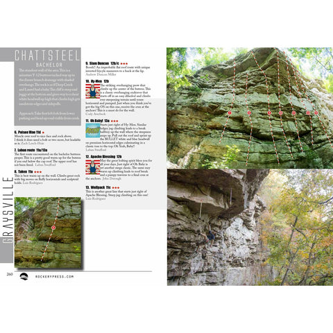 Finally, we got our act together and have put the labor and love into the second edition of Chatt Steel. There are so many new routes and areas in the guide that we had to break it up into two books. This is Chatt Steel North which features the areas of Leda, Deep Creek, Big Soddy, Dinner Branch and additional Graysville areas, Dogwood routes, Laurel Falls, and Buzzard Point. Pre Order now and get your copy by November in time for Fall temps. Check out the sample pages below.