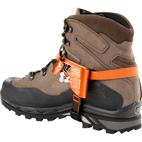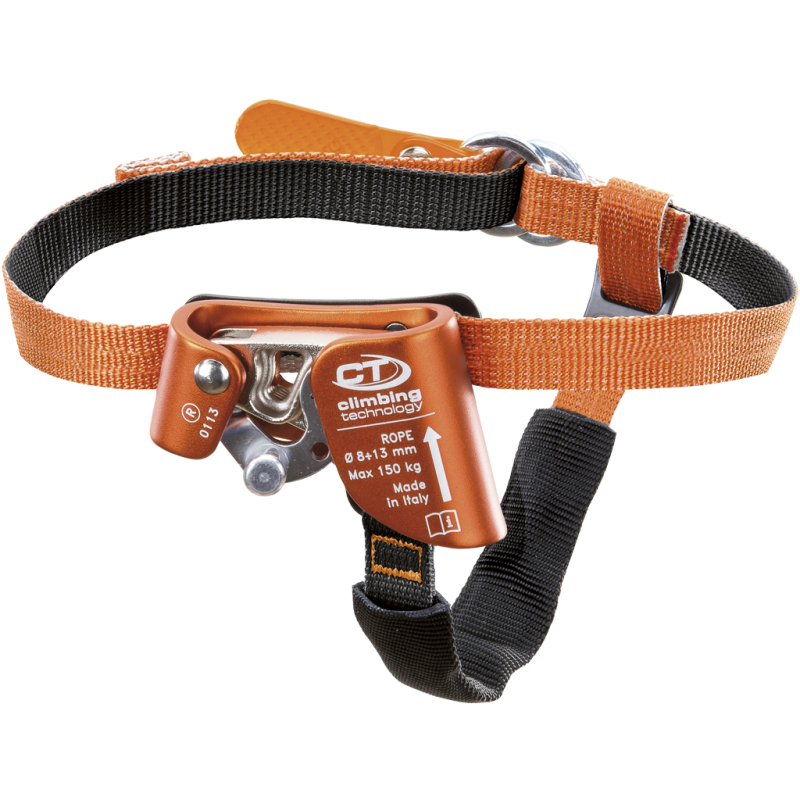 Ascender for the right foot, when used in conjunction with an ascender handle (e.g. QUICK’UP + or QUICK’ARBOR H) or a chest ascender (e.g. CHEST ASCENDER HC), makes it easier and speeds up the ascent of a rope.