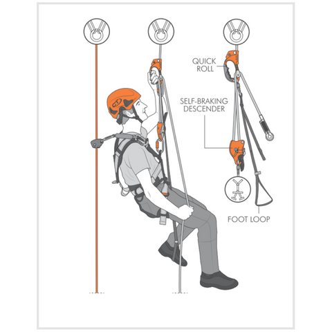 Attention! The integrated pulley is not PPE and it can only be used as an additional aid to the ascent, as per the methods shown, but not for hauling people and/or material.