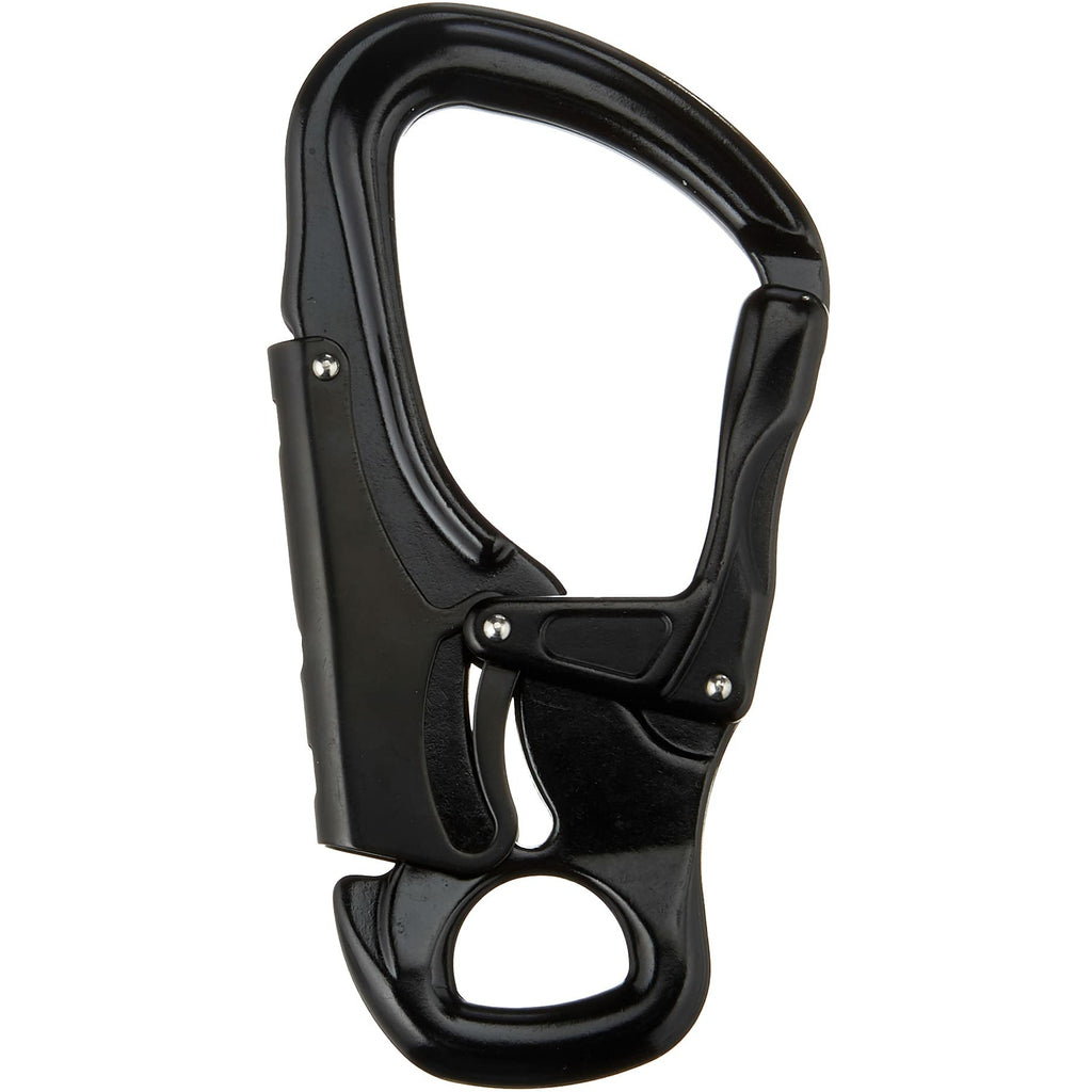 The Tango carabiner is designed to give you quick and easy security. The unique locking device is opened by depressing the lever with your thumb while griping the biner. When released it locks the gate shut for security. Great for rope courses. Key Lock. Captive Eye