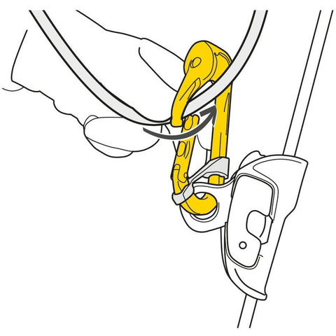 - may be used with a CAPTIV positioning bar to favor loading of the carabiner along the major axis and to limit the risk of it flipping