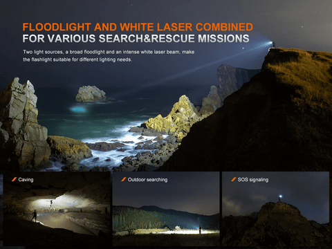 The Fenix LR36R is a powerhouse flashlight built for extreme performance and versatility. Its white laser light source delivers an impressive 4134-foot beam distance with a blinding 10,000-lumen output, making it ideal for search and rescue or tactical missions. The OLED smart display keeps you informed with battery and runtime updates, while the toggle switch and stepless brightness regulation ensure effortless control.