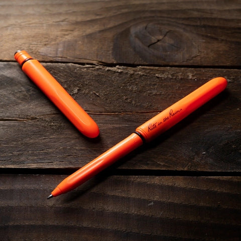 Rite in the Rain's pocket-able EDC pen writes no matter what. It writes when the paper is wet. It writes upside down. It writes down to -30F. If you forget it in your pocket and it tumbles in the wash, it will write afterwards. It just writes. So if you need a pen that works no matter what, pick up the Rite in the Rain All-Weather Pocket Pen. The Pen's Blaze-Orange color is easy to locate in any environment. Measures 3.25" Closed, 5.25" Open, .4375" D. Black ink, point size .8 mm.