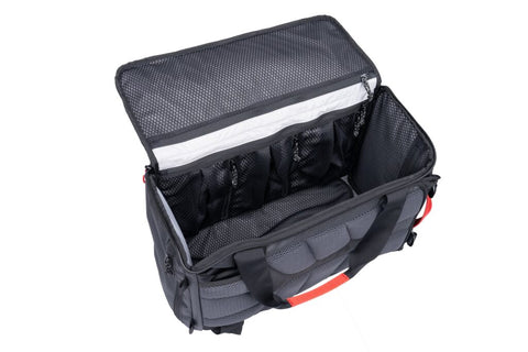 Named after the iconic Lotus Tower, this pack is designed for working at height and taking abuse. The durable black exterior is Double Ripstop Nylon with Carbonate coating on both sides for superior abrasion and water resistance. Heavy duty zippers around the Lotus are fitted with reflective pulls and stored in protective garages. The Lotus includes a removable waist belt and a ground cloth to protect gear as it comes out of the pack. Born to travel, the Lotus has a business card / team card holder, Velcro strip for patches and ID, and fits nicely in overhead bins. Take it anywhere, anytime, for any job.