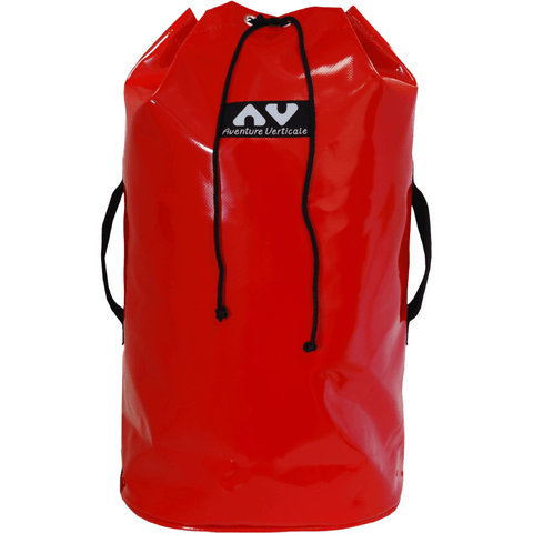 Sturdy caving bag made from varnished PVC 1100 dTex, 900 g/m² canvas, with reinforced bottom stitching for added durability. Designed with a bottom handle, two side handles, and a lanyard. Secured by an eyelet and string closure (compatible with the AVSP94 Blockcord). Inside, it features two gear loops and an interior flap for organized storage. Adjustable shoulder straps ensure comfortable carrying. Ideal for transporting group equipment or rope, with high-resistance canvas and strong, automated stitching similar to harness construction.